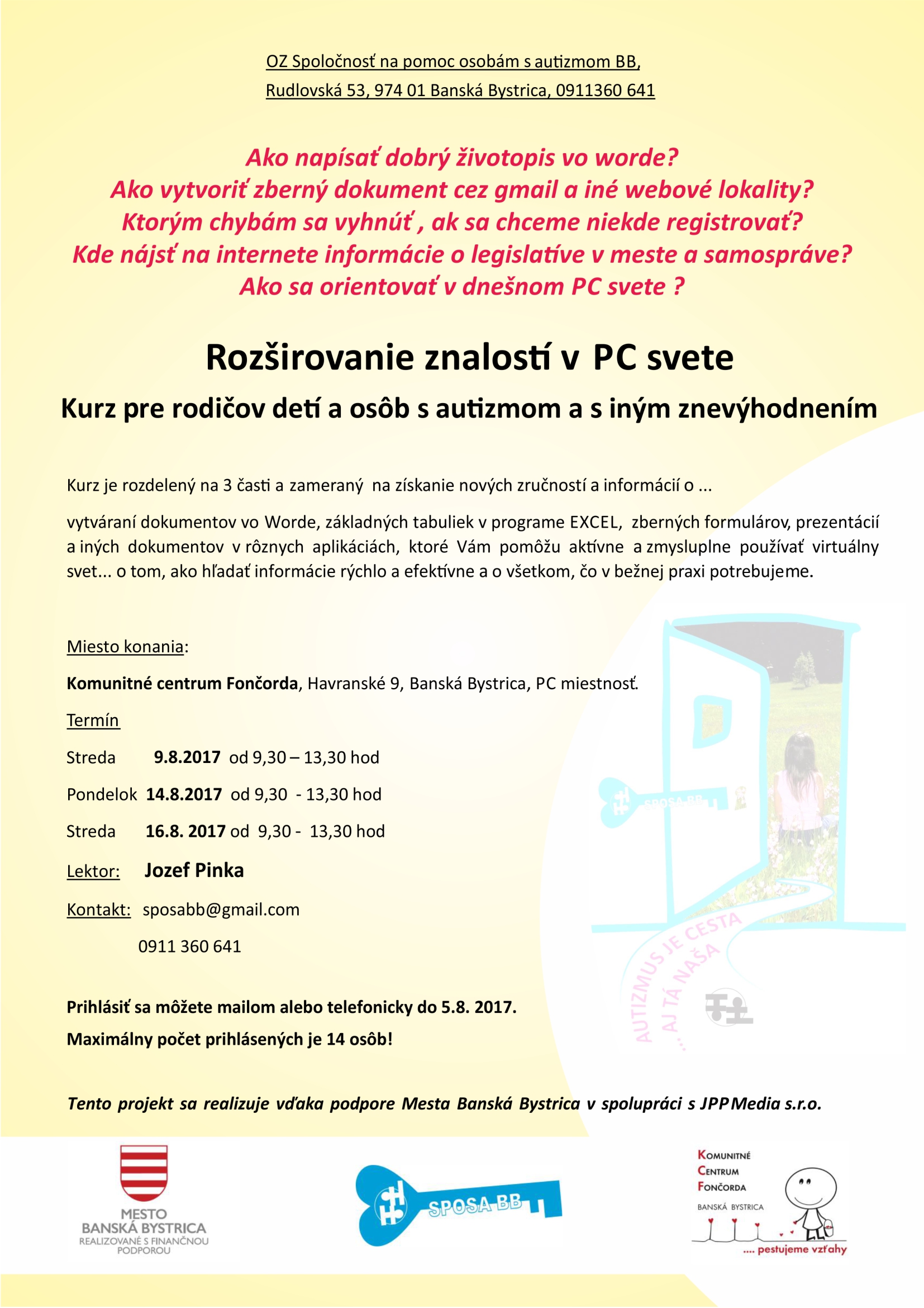 Kurz pre rodičov detí a dospelých osôb s autizmom a iným znevýhodnením.